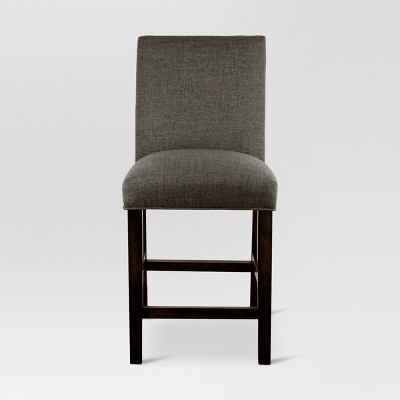Dip just a toe outside of tradition with this uniquely shaped counter height dining chair, hand upholstered in a rich fabric for a little extra pop and additional appeal. The tapered legs are real wood and the frame is solid, making assembly quick and easy. These chairs make a fine selection that will hold up well and look superb while providing family and/or guests with a comfortable seating option.