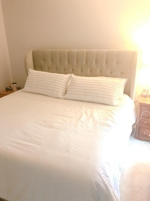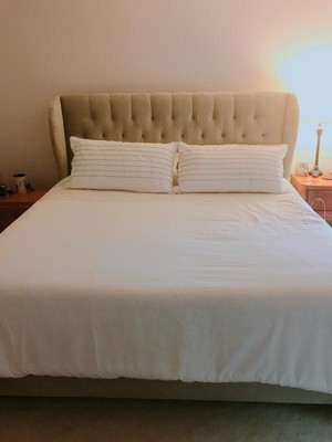 - Headboard has diamond tufting and wingback accents for a pop of texture