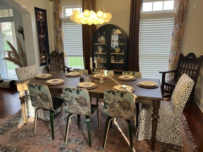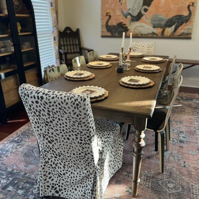 When ordinary seating simply won’t do, select our hand upholstered skirted dining chair as a compliment to your table. Enveloped in Animal Print fabric that was carefully sourced and chosen for its quality, this chair is made to order and manufactured in Illinois. We believe a good chair is an investment, and construct ours accordingly—with a sturdy frame and real wood legs under ample skirting. Easy to assemble and comfort-tested, this delightful piece definitely ticks all the boxes.