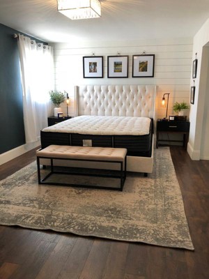 I was hunting for the perfect new tufted bed for our master bedroom. When you are looking at this style consistently, across numerous websites, they tend to eventually look the same and you begin to wonder - what's the difference between the beds in the $300-500 range on other sites versus the beds in the $600-800 range? Well my review won't answer that but I do tend to side with the old adage - you get what you pay for. This bed is WELL made. The frame is metal, and although I originally thought I wanted a wood frame, I find not faults here. We purchased a low (5") box spring and I find that we still have a lot of headboard left on display after the bed is made. There is not a lot of clearance for storage under the bed (6" at best) so if you need a bed with storage solutions, this may not be best. The wings do go all the way to the floor (you can see in the image above) which was important to us. Many of the lower priced beds have a gap where the headboard stops and we didn't want to have to manipulate the design. I personally recommend you watch this item before diving in as Target tends to have many sales at any give time. We were able to snag this beauty in the $600 range! An absolute steal and worth every penny. Lastly, although shipping is free, a $20 handling fee applies so keep that in mind when you're gauging your price point.