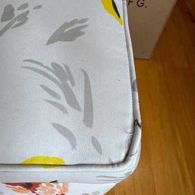 Bird print fabric pattern does not match up between lid and base; expected a pattern match on one side as in photo. The item was delivered quickly and packed well (no damage), but the quality of craftsmanship was not great; the piping around the top edge was uneven and sloppy. I say this as an experienced sewer who has made piped furniture cushions myself…and mine turn out practically flawless. Guess you get what you pay for. I really wanted to like this, but sadly I will be returning it to Target first chance I get. :(