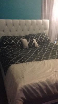 I love my new bed!! The color and softness of the velvet are superb!! I was looking for a soft, Heather grey and button tufted headboard and I found it!! So many of the light grey headboards out there were a scratchy linen fabric. The price was beyond reasonable. My room looks so elegant and cozy now. I highly recommend this bed. Obviously - LOL.