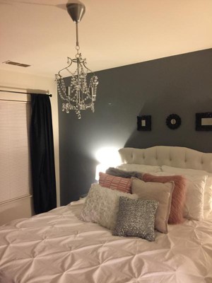 I love this headboard! Looks very expensive, but isn't. It looks amazing in my soft blue and white guest room. Wish I'd gotten one for the master bedroom too.