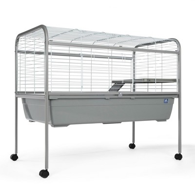 Skyzone 2-Tier Small Animal Habitat: Mobile Bunny Cage with Wheels, Removable Tray, Platform & Ramp Black 32.00×20.80×26.00 in