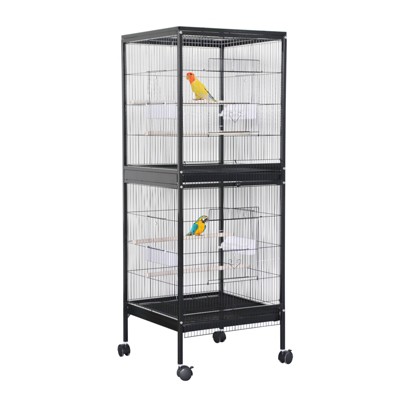 Have your bird's home be a stylish sanctuary with our sleek and spacious bird cage. It has a modern design and convenient features. Slide-out trays and bottom mesh panels allow for easy cleaning. A colorful wooden swing and rope ladder allow endless fun. Our build offers the option to stack two cages, maximizing space, which is excellent for a bird lover with a few feather friends. Give your bird a home all their own; give your bird a .Features: