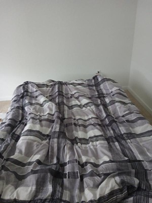 Hi valued customer. Thank you for your feedback. We apologize for any inconvenience you may have experienced with our comforter set, the Slate Plaid Comforter Set in Black. This set features bold black and grey hues, with a hand-drawn plaid design printed on the soft comforter and 2 shams, creating a handsome and cozy look. The solid grey reverse side adds a rich touch of color to complement the top of the bed. Additionally, the set includes 2 decorative pillows embellished with fabric manipulation and embroidery to complete the bedding ensemble. We recommend thoroughly reviewing all available information, including customer reviews, detailed product descriptions, and potentially requesting additional photos if necessary. Your satisfaction is paramount to us, and we are dedicated to ensuring that you have a positive experience with our products.