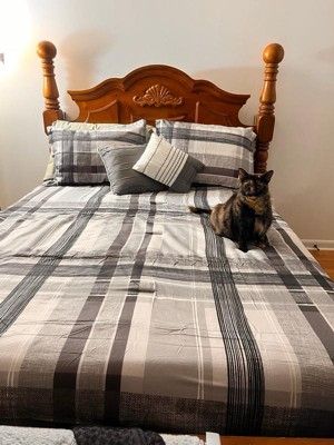 [This review was collected as part of a promotion.] I recently received the Rudy Plaid Comforter Set and it came with two shams, two decorative pillows and one comforter. First impressions: It looks very good. The comforter and shams give a classy look and the decorative pillows really add on an extra touch of class. The quality of the ensemble is also quite good. I haven't washed it as yet to be able to comment on how it washes. The comforter keeps me cool and as it is summer right now that is great. I will have to try them in winter to comment on its suitability in keeping me warm. The shams are standard size. I would loved if it came with a matching sheet set so that it would have been a complete complimenting set. Having said that. I really like everything in the current set and I'm satisfied with it!