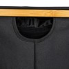Add a touch of sophistication to the laundry routine with this elegant black hamper. It's not just a utility item but a statement piece that stands tall at 29 inches in height, stretches 22.5 inches in length, and spans 14.5 inches in width. The hamper comes equipped with two removable mesh liners, each with handles, making laundry day a breeze. The liners are perfect for sorting lights and darks or transporting clothes to the washer with ease. The lid ensures that the laundry stays out of view, maintaining the sleek look of any space. Constructed from durable polyester, this hamper is built to last and will serve as a functional and stylish addition to the home.