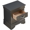 The nightstand measures 24"H X 21"W X 16"DTwo drawers keep your essentials neatly storedNo assembly needed, ready for immediate useSleek black finish blends with various stylesTransitional design complements any decorAssembly Required: No
