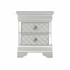 Dimensions of 24'H x 21'W x 16'D fit snugly anywhereTwo spacious drawers for storing night essentialsGorgeous Silver Champagne finish adds eleganceNo assembly needed, just unpack and enjoyTransitional design suits a wide range of decor