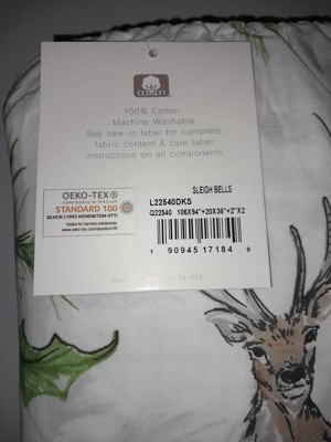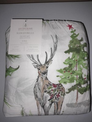 - THE SLEIGH BELLS DESIGN: One of our most popular sets, Sleigh Bells is a calming holiday feeling. The front is a deer, Christmas trees and holly on a white ground and the reverse is a red and white plaid. The comforter is filled with soft, hypoallergenic 100% polyester.