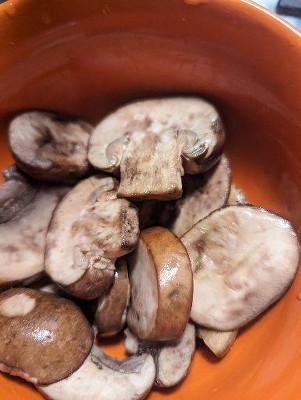 These were delicious good quality mushrooms. I wish they were sliced a little bit thinner. Very thick cut.
