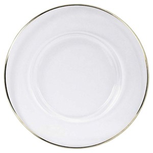 Transform your dining experience with our charger plate, meticulously crafted with a gold edge for a touch of sophistication. Each plate is hand-finished by skilled artisans, ensuring a unique and high-quality product that stands out. Measuring a generous 13 inches, this plate is perfect for layering under your main dishes or serving as a stunning centerpiece. Choose from elegant gold or silver finishes, and select from sets of 1, 4, 8, or 12 to suit your needs. Ideal for special occasions or daily dining, this charger plate brings a refined touch to any table setting.
