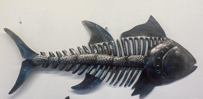 Slickblue 24-Inch Fish Bones Metal Art, Artisan-Crafted Steel Wall Decor for Indoor/Outdoor Use