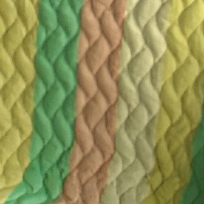 - Handmade quilt with slight curve in stitching