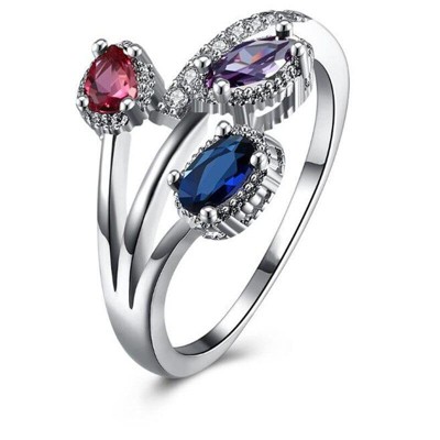 • Features three oval-cut cubic zirconia center stones