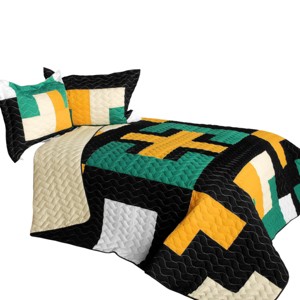 Slickblue 3PC Full/Queen Bedding Set, TC Fabric, Handmade Vermicelli Quilted Patchwork, Green/Red