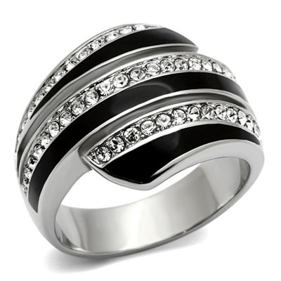 Slickblue Black Ion-Plated Stainless Steel Band Ring with Montana Blue Crystal, Sleek & Stylish, Size 5-10 - 1 of 4