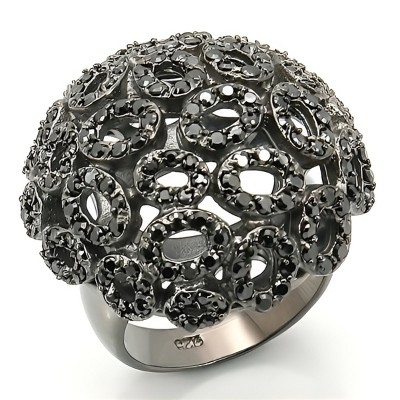 Slickblue Brass Rhodium + Ruthenium Ring with Jet CZ - Elegant Round Black and Clear Stones, Synthetic Design, Size 5-10 - 1 of 3
