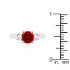 • Classic 3-stone design with vibrant red and clear cubic zirconia stones