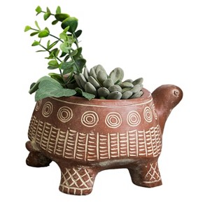 Slickblue Turtle Design Cement Planter - Available in Cyan and Red, Large and Small Sizes