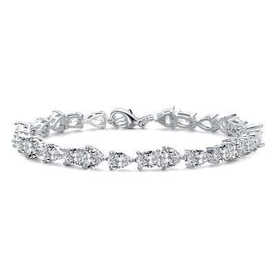 Slickblue Circle Bijoux Women's 7-Inch Bracelet, Clear CZ Stones, Rhodium Plating, Lock Clasp, Silvertone Finish