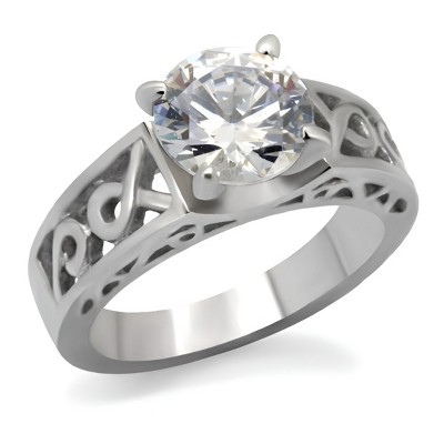 This elegant wedding ring set features a 5.25mm clear Cubic Zirconia center stone, set in a polished stainless steel band (no plating) for a sleek, lasting shine. The classic round design is perfect for women who want a timeless, sophisticated look for their special day. Available in sizes 5-10, this ring set is ideal for engagements, weddings, or as a meaningful gift.