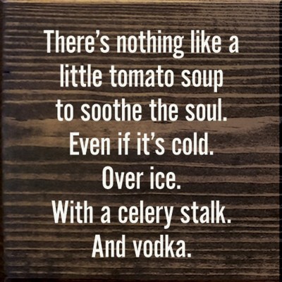 Add a splash of humor to your kitchen or home bar with this witty wood wall sign that reads:"There’s nothing like a little tomato soup to soothe the soul. Even if it’s cold. Over ice. With a celery stalk. And vodka." Playfully disguised as comfort food wisdom, this sign is a subtle nod to everyone’s favorite brunch beverage. Crafted from solid knotty pine, each 7x7 sign embraces the quirks of real wood—knots, small cracks, and grain variation that bring out its rustic charm. Whether it’s displayed on a shelf, behind the bar, or hanging in the kitchen, this piece fits right in with relaxed, personality-filled spaces. It includes a routed slot on the back for simple wall mounting and flat edges for easy shelf-sitting. With 10 color choices available, it’s a fun gift for brunch lovers, home entertainers, or just someone who appreciates clever humor.