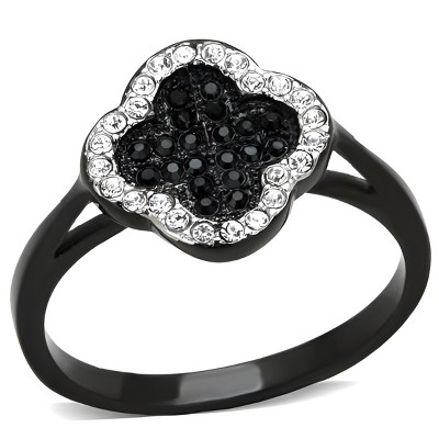 Slickblue Floral Jet Crystal Ring for Women – Two-Tone IP Black Stainless Steel Design – Halloween Style – 5–10 - 1 of 4