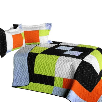 Slickblue Full/Queen 3PC Quilt Set, Handmade Vermicelli-Quilted, TC Fabric, Patchwork Design, 3 Colors