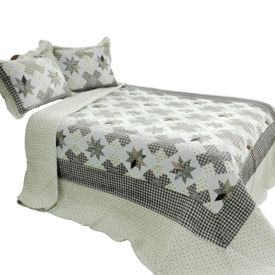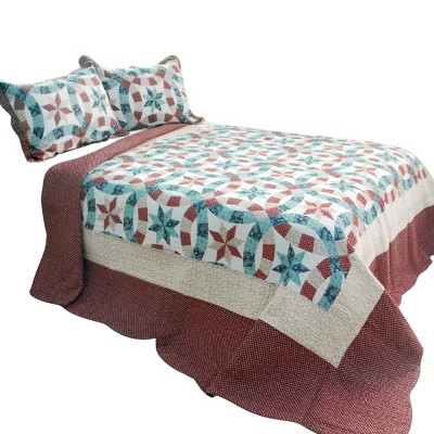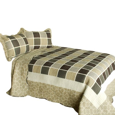 Slickblue Full/Queen Cotton 3PC Quilt Set, Vermicelli Quilted, 7 Design Options, Reversible, Includes 2 Shams