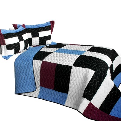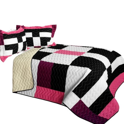 Slickblue Full/Queen Patchwork Quilt Set, Reversible & Machine Washable, TC Fabric, Handmade, Pink/Blue, 3pc