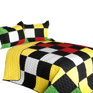 Slickblue Full/Queen Quilt Set, 100% TC Fabric, Vermicelli Quilted Patchwork, Checkered, 3pc