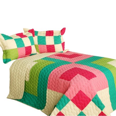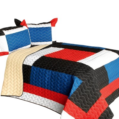 Slickblue Full/Queen Quilt Set, 100% TC Fabric Vermicelli Quilted Patchwork, Machine Washable, 3 Geometric Design, 3pc