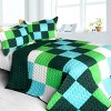 Slickblue Full/Queen Quilt Set, 100% TC Fabric Vermicelli Quilted Patchwork, Reversible, Multi Design & Color, 3pc