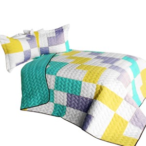 Slickblue Full/Queen, Vermicelli Quilted Patchwork Quilt Set, Reversible, Patchwork, TC Fabric, Purple, 3pc