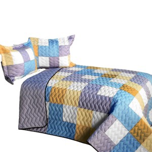 Slickblue Full/Queen, Vermicelli Quilted Patchwork Quilt Set, Reversible, TC Fabric, Patchwork, 3-Piece