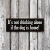 Add a lighthearted touch to your home bar, kitchen, or living space with this rustic wood sign that says: “It’s not drinking alone if the dog is home!” Perfect for pet lovers and those who enjoy casual gatherings, this sign brings humor and charm wherever it’s displayed. Crafted from solid knotty pine, each piece features the natural variations of real wood—knots, color changes, cracks, and minor edge marks—that contribute to its weathered, vintage look. These imperfections enhance the authentic rustic feel. Measuring 3.5x10 inches, this compact sign fits easily on shelves, countertops, or walls. It includes a routed slot on the back for easy hanging and flat edges so it can also stand on a shelf or mantel. Multiple color options help match your space.