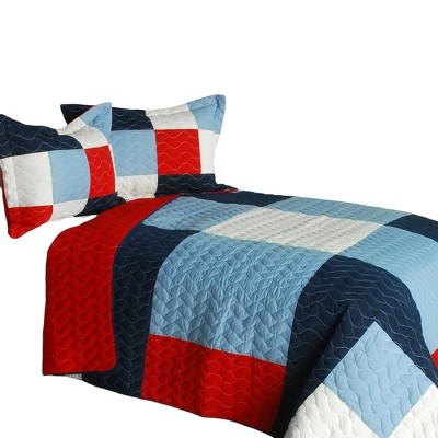 Slickblue Handmade 3PC Vermicelli-Quilted Patchwork Quilt Set, Full/Queen Size, 2 Design Options, 3-Piece Set