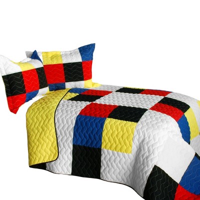 Slickblue Handmade Full/Queen Quilt Set, Smashing Patchwork, 100% TC Fabric, Multicolor/Yellow, 3-Piece Set