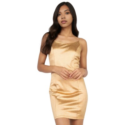 Turn heads in this Women's Hook & Eye Ruched Cami Mini Dress in Mauve. Designed with a bodycon silhouette, this mini dress features a square neckline, adjustable cami straps, and a front hook-and-eye detail for added edge. Built-in padded and underwired bra cups offer shape and support, while the ruched texture throughout enhances your curves. Finished with a secure zip-up back, this dress is crafted from a stretch-knit blend of 90% Nylon and 10% Spandex for a smooth, flattering fit. Available in sizes S–L.