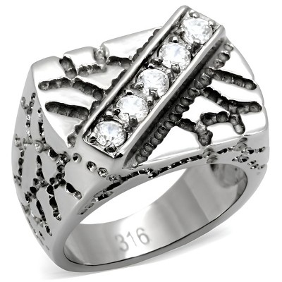 Slickblue Men's High Polished Stainless Steel Ring, 5.5mm Clear CZ, Signet Style, Father's Day, Sizes 8-13 - 1 of 4