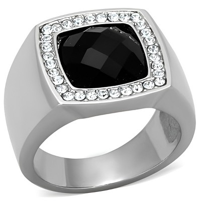 This men’s polished stainless steel ring features a bold semi-precious snowflake obsidian stone in a jet black finish, offering a modern accessory with timeless appeal. The polished band and striking stone make it an eye-catching choice for daily wear, special events, or as a standout statement piece in any jewelry collection. Crafted with a smooth stainless steel finish and designed in sizes 8 through 13, it provides a comfortable fit and a substantial feel. The snowflake obsidian centerpiece measures approximately 13 by 12 millimeters, giving the ring a strong visual presence while maintaining a classic, versatile design. With its polished look, refined details, and sturdy stainless steel setting, this band is well-suited for men looking to add a distinctive piece to their ring rotation year-round.