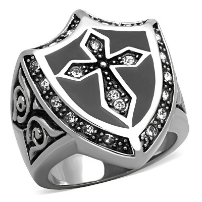 Add a bold, clean edge to your look with this men's polished stainless steel ring featuring deep black jet-colored epoxy. Crafted from stainless steel with a high polished, no plating finish, this ring has a smooth, bright surface that highlights the rich, dark jet detail. Designed with biker and cross style influences, it offers a strong and confident appearance. Weighing approximately 9.80 grams, it feels comfortable enough for everyday wear. Available in men's sizes 8 through 13, this ring is a great choice for those who want simple, strong style with a touch of bold color.
