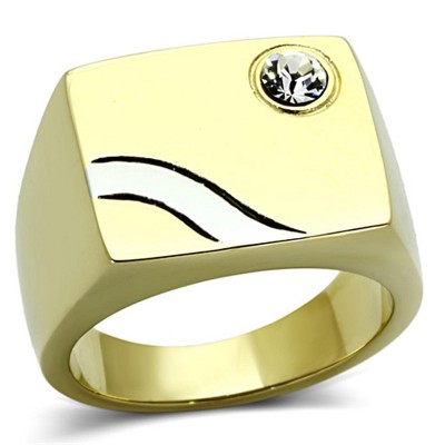 This two-tone IP gold (ion plating) stainless steel ring features a classic and bold design, making it a standout accessory for men. The clear synthetic crystal (5mm) is set in a sleek, polished band with a striking contrast of gold and silver tones. Crafted from TK316 stainless steel, this ring is designed for long-lasting wear and timeless appeal. Weighing approximately 12.00g and available in size 8-13, it's an excellent choice for Father’s Day, special occasions, or everyday style.
