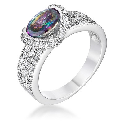 • Brilliant oval-cut mystic cubic zirconia centerpiece