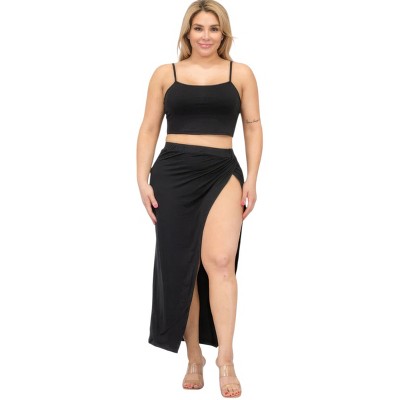 Slickblue Plus Size 2 Piece Halter Neck Set - Lavender or Mustard Crop Top and Midi Skirt, Stretch, Size 1XL-3XL
