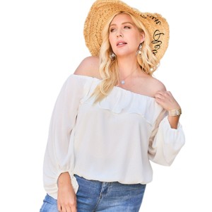Slickblue Plus Size Off Shoulder Ruffle Top, Trendy Bubble Sleeves, Lightweight White Blouse, Size 1XL-3XL - 2 of 4Slickblue Plus Size Off Shoulder Ruffle Top, Trendy Bubble Sleeves, Lightweight White Blouse, Size 1XL-3XL - 3 of 4Slickblue Plus Size Off Shoulder Ruffle Top, Trendy Bubble Sleeves, Lightweight White Blouse, Size 1XL-3XL - 4 of 4