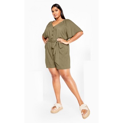 Slickblue Plus Size Rayon Modal Mini Romper, Ruffle Trim Dolman Sleeves, Side Pockets, Elastic Waist, Heather Grey - 1 of 4