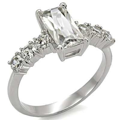 Slickblue Polished Stainless Steel Engagement Ring, Clear CZ 6mm Round Center Stone, Pave Setting, Size 5-10 - 1 of 4